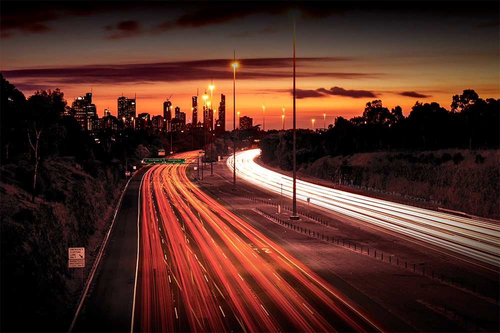 Sometimes the sunset isn’t the important part of the story, just something that adds to it. In the above case, you would put the horizon line on the top third line because you want to show more of the freeway going into the city.