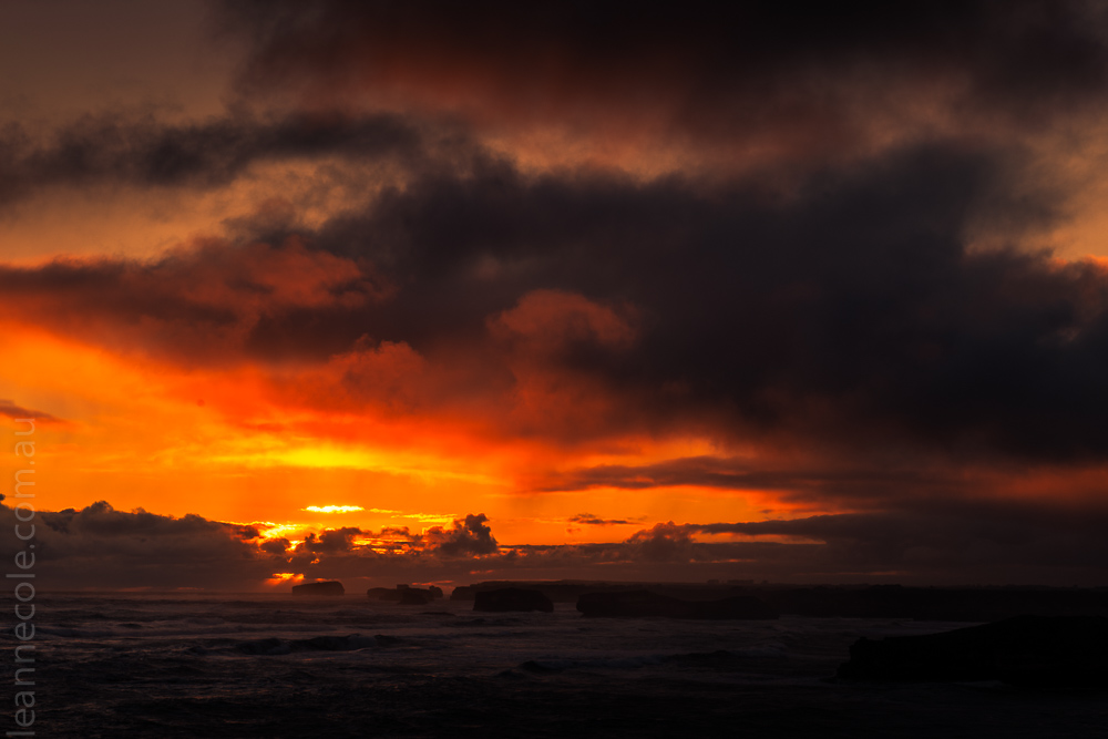 Putting the horizon on the bottom third line lets more of the sunset into the image. Often, I think putting the horizon there is better because it gives you a better image, and the colours come out better. You are kind of tricking your camera to darken the image more, so the colours come out better.