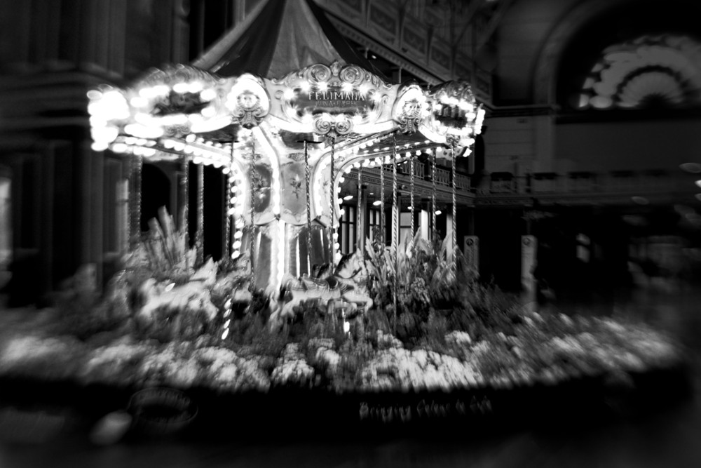 A friend sent me a video with a carousel in it. There was other stuff in the image, but it got me thinking about a similar image I had that I took at the last Flower and Garden show I went to. I decided to try making it monochrome.