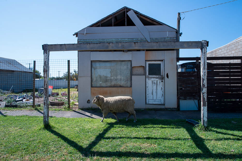 Nyah West isn’t the vibrant town it once was, but still, I was shocked to see a sheep wandering up and around the main street.  It was having a lovely time eating the grass that is in front of some of the old shops.