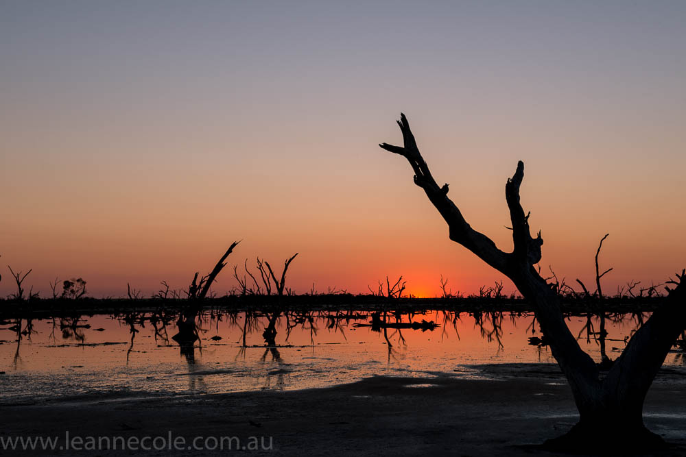 1. I really love these photos, especially the ones with the dead trees. The one you took looking into the sun is quite striking. And the sunset shots are wonderful. That light really adds an eeriness to the scenes. Those last light photos are really wonderful. Thanks Leanne!