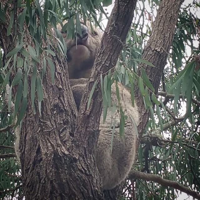 We went into Flinders for breakfast. While we were sitting out the front, there was a big commotion out the front of the place we were at, in the main street.  It turns out a koala was crawling along the ground and then climbed up a tree. Not something you see every day in towns. I took this with my phone and put it on Instagram.