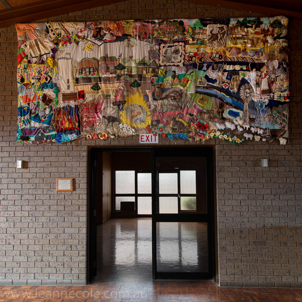I was taken into the local hall to see the patchwork mural that was made locally and put up on display in the hall. Great quilt.