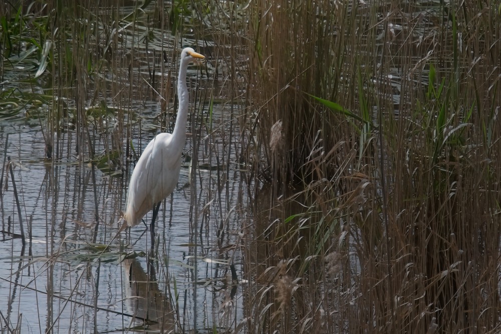 When I went to Cressy recently, we stopped at an old bridge. (The photos of that are still to come) While I was standing on the bridge, I looked down into the reeds and saw, I think it is, a white heron. I zoomed in as far as I could, but the image below was the best I could get.